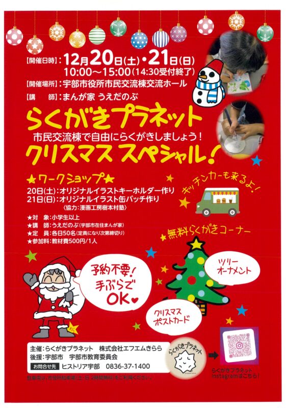 宇部市役所市民交流棟で「らくがきプラネット・クリスマススペシャル」開催!