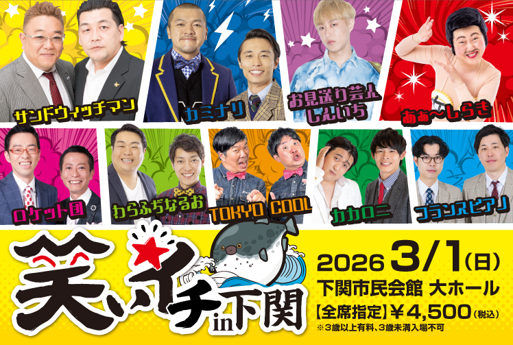 2026年3月1日㈰開催の「笑いイチin下関」のチケット販売中!